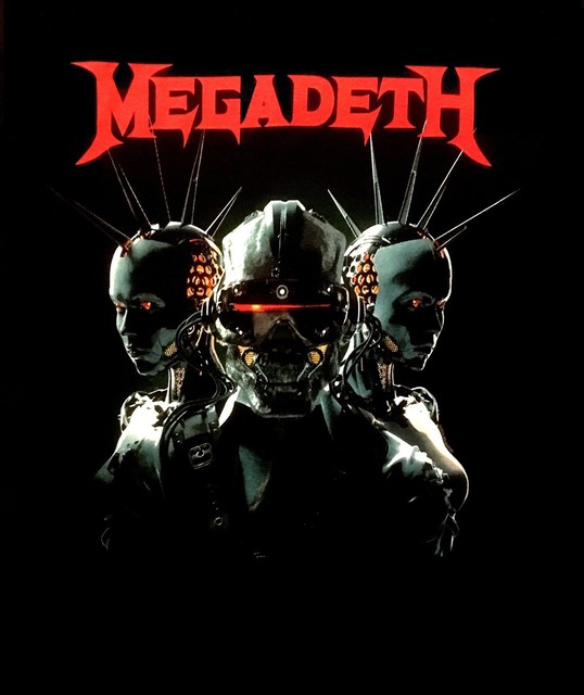 Megadeth band with text overlay, thrash metal, metal music, men.